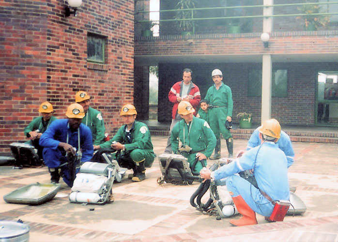 Primera Formación en Salvamento Minero SENA-PROCARBON Zipaquira, Mina el Triunfo, Equipos de Respiración Auto-Contenidos 1er Equipo de Circuito Cerrado W-70 FASER de Polonia en Colombia.