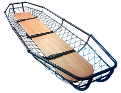 Ideal para atención de emergencias en altura, minas, áreas agrestes y transporte aéreo. Camilla sólida, fabricada en aluminio y su exterior en polietileno de alta densidad, la cual hace que la camilla sea sólida y robusta, diseñada para la evacuación helicoportada, posee asas para sujeción distribuidas al entorno de la camilla para mayor facilidad de transporte.