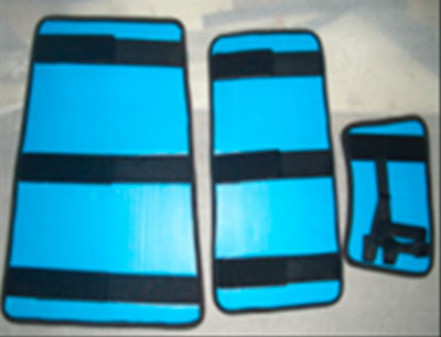 El kit incluye férulas para miembros superiores, férula universal para tórax, collarín adulto y pediátrico y bolso. Traslucidas a los RX. Elaboradas en Foam impermeable, con sistema Velcro para el ajuste. Marca Prosplints