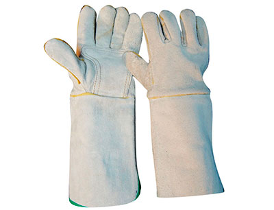 Guante fabricado en carnaza con refuerzo interno o externo en carnaza en palma y cinco dedos. Puño en carnaza que va del más corto (5 cms) al más largo (64 cms). El tipo de refuerzo y el largo de la manga dependen de la necesidad para los trabajos en los cuales vayan a ser a hacer utilizados; en la industria metalmecánica, manufacturera y ferretería.